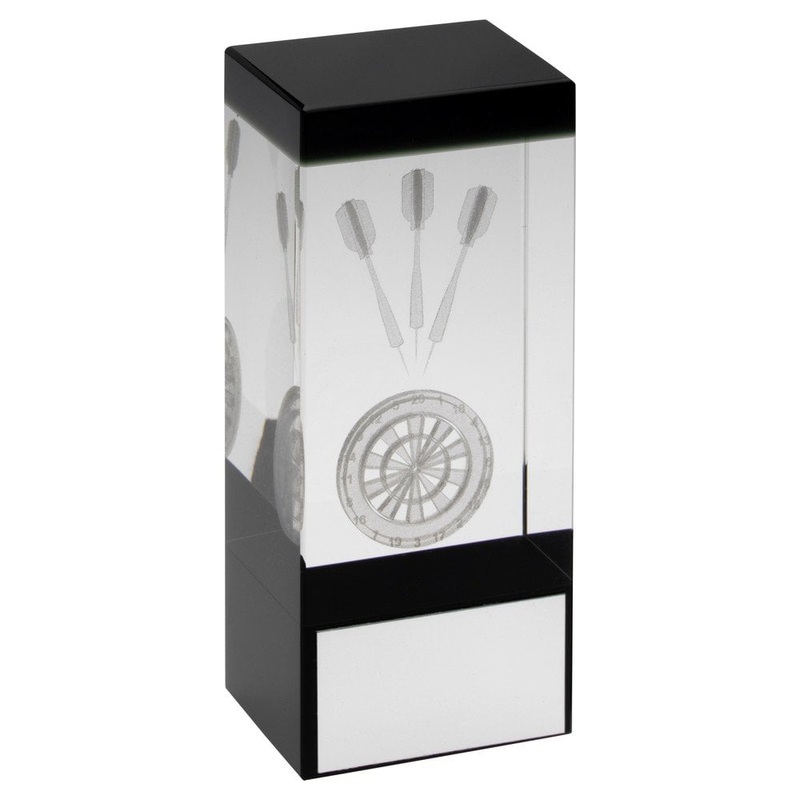 Clear Glass Block Darts Trophy – Lasered Darts and Dartboard – Trophy Award Large
