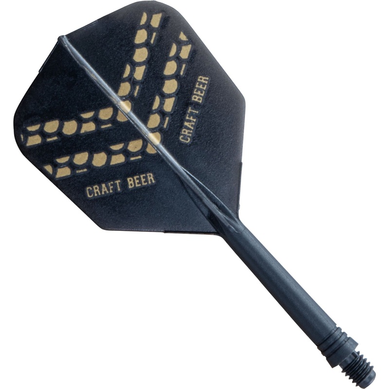 Cuesoul – Tero Dart Flights – Standard – Solid – Black with Craft Beer design. Precision moulded to ensure the flights retain 90 for each throw. The black Craft Beer flights feature a reinforcing rib moulded on the top and bottom of the flight to protect against tearing during throw. The medium black shaft is measured for what is visible once the dart is assembled. Shaft length: 28mm